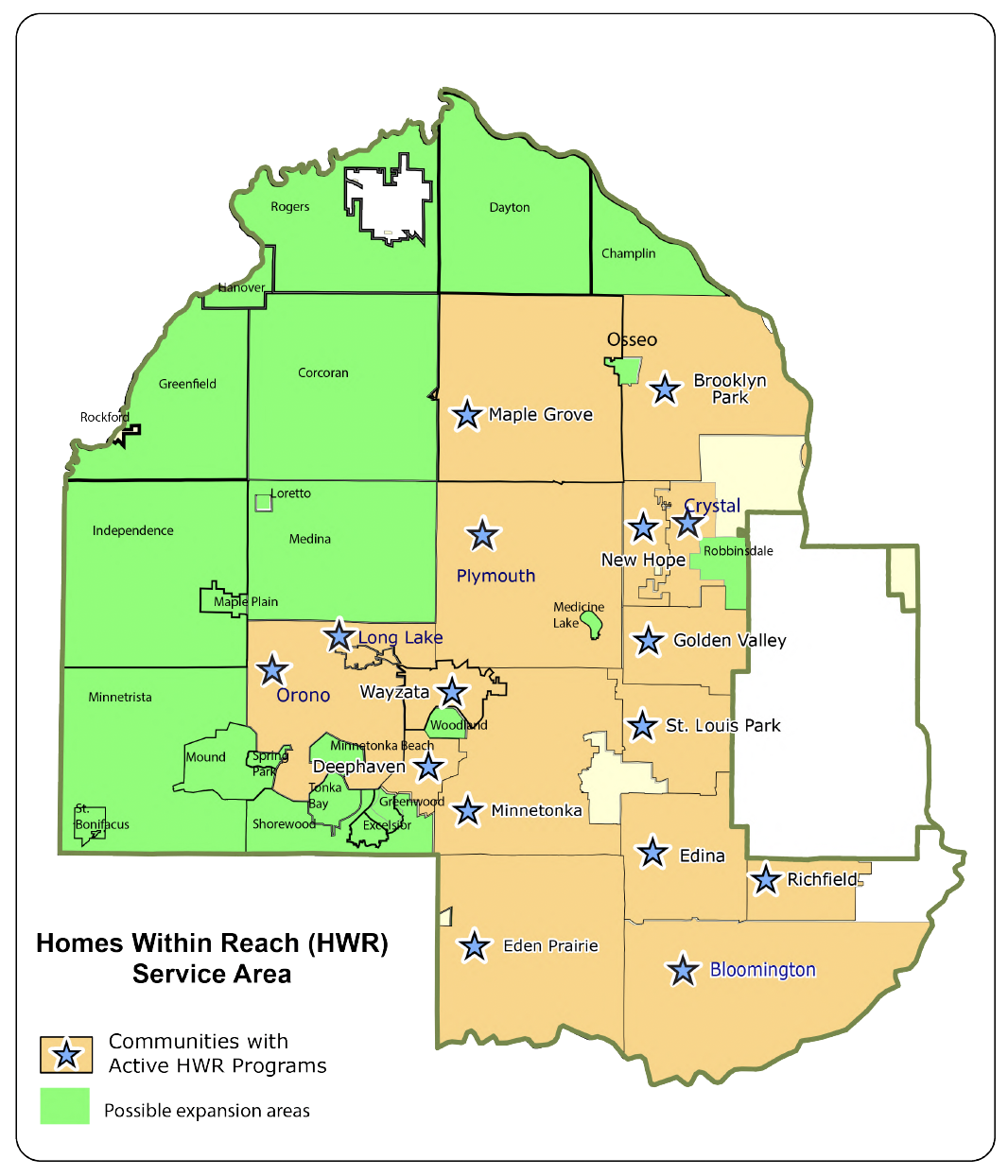 Bloomington, Brooklyn Park, Crystal, Deephaven, Eden Prairie, Edina, Golden Valley, Long Lake, Maple Grove, Maple Plain, Minnetonka, New Hope, Plymouth, Richfield, St. Bonifacius, St. Louis Park and Wayzata